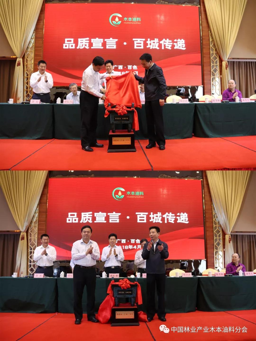 以标准体系建设为基础的品质宣言·百城传递活动第二站来到广西百色,中国林业产业联合会副秘书长陈圣林和百色市人民政府市长周异决共同为此活动揭幕。